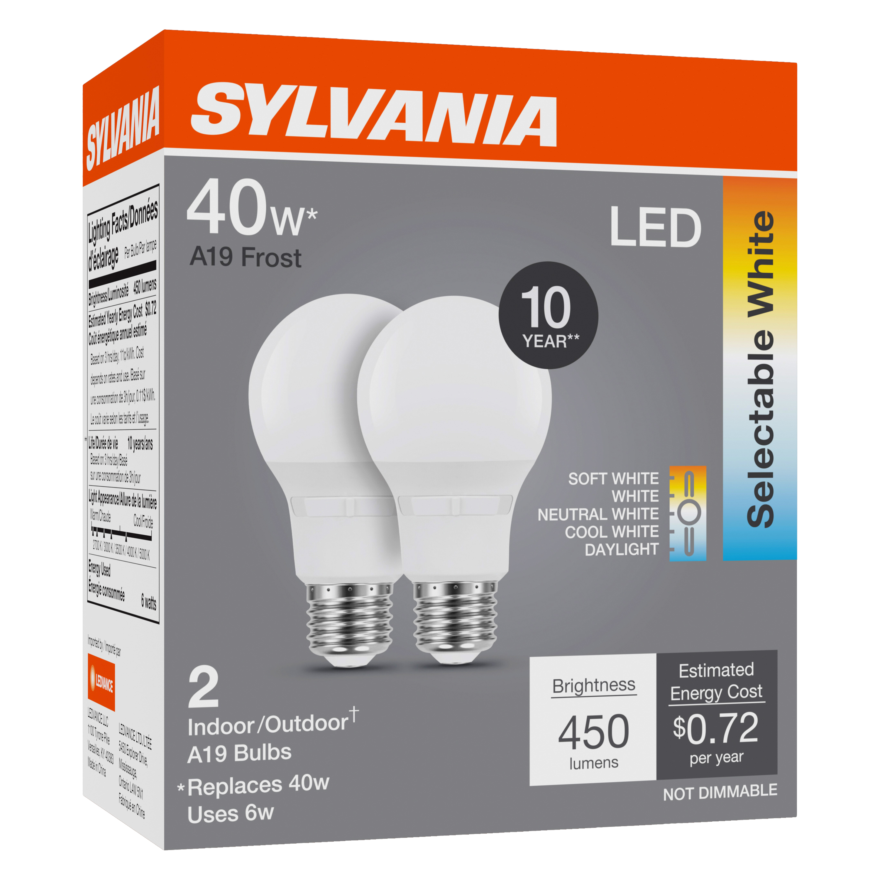 | Claimed equiv. conventional lamp power | 40 W |