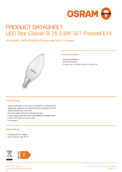 | Tuotehuomautus | Kaikki tekniset tiedot koskevat koko lamppua, Valodiodien (LED) monimutkaisen valmistusprosessin vuoksi LEDien tekniset arvot ovat tyypillisiä ja puhtaasti tilastollisia arvoja, jotka eivät välttämättä vastaa yksittäisen tuotteen todellisia arvoja ja ne voivat poiketa tyypillisestä arvosta. |