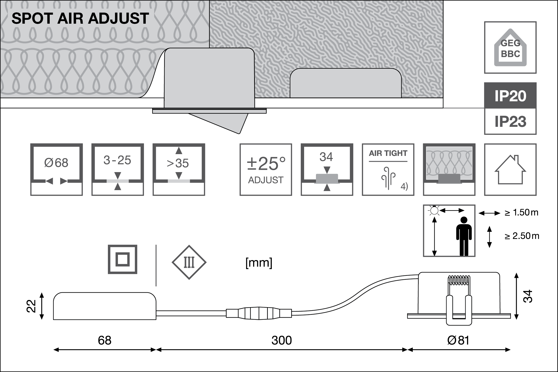 | Diametro del foro per il montaggio | 68 mm |