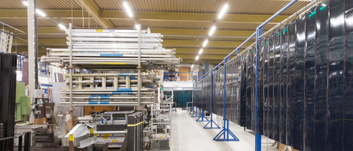 The range was chosen because it provides uniform light with a wide beam angle of 180° and a high luminous efficacy of 115 lm/W. Furthermore, its IP65 protection makes it ideal for industrial and storage facilities.