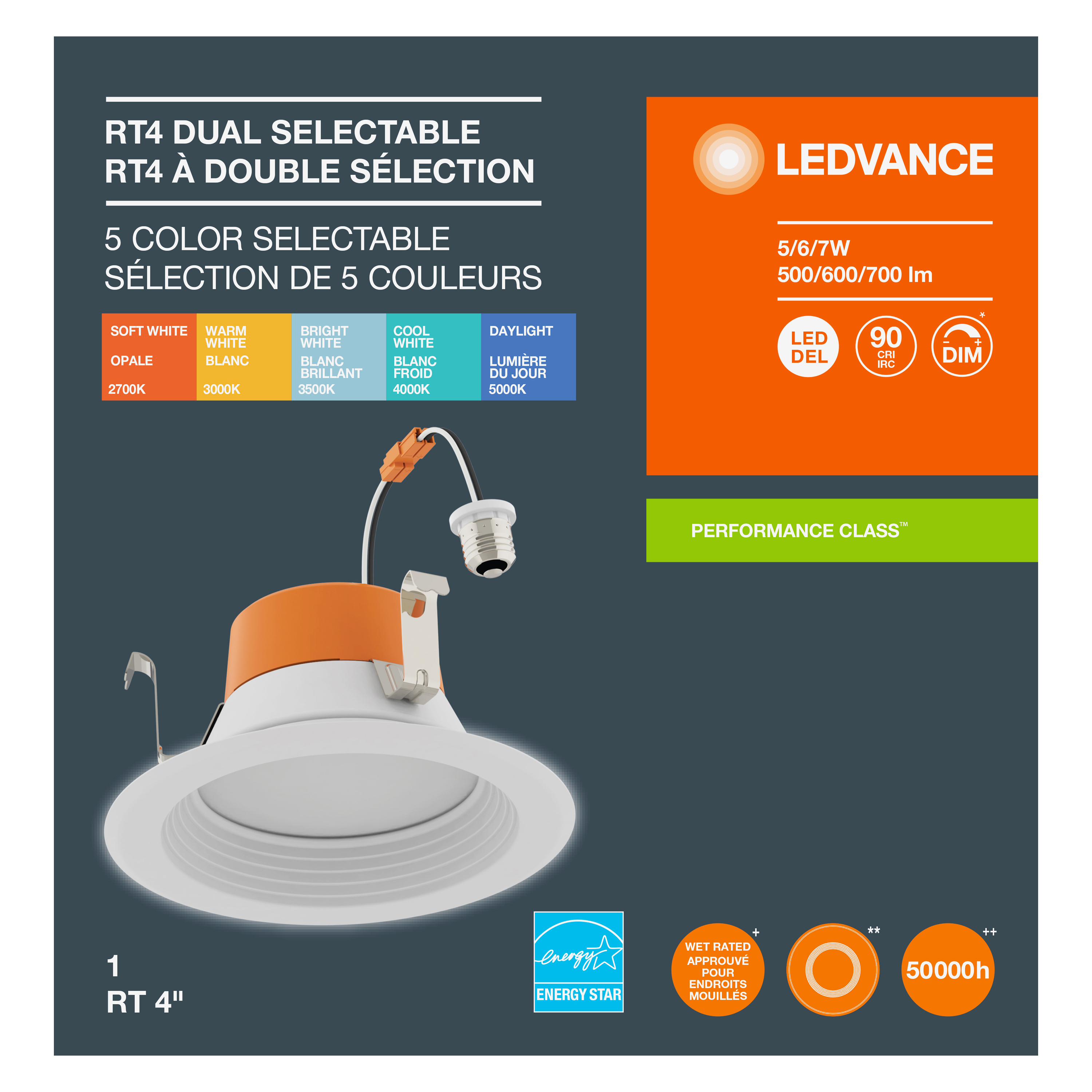 • Selectable CCTs: 2700/3000/3500/4000/5000K