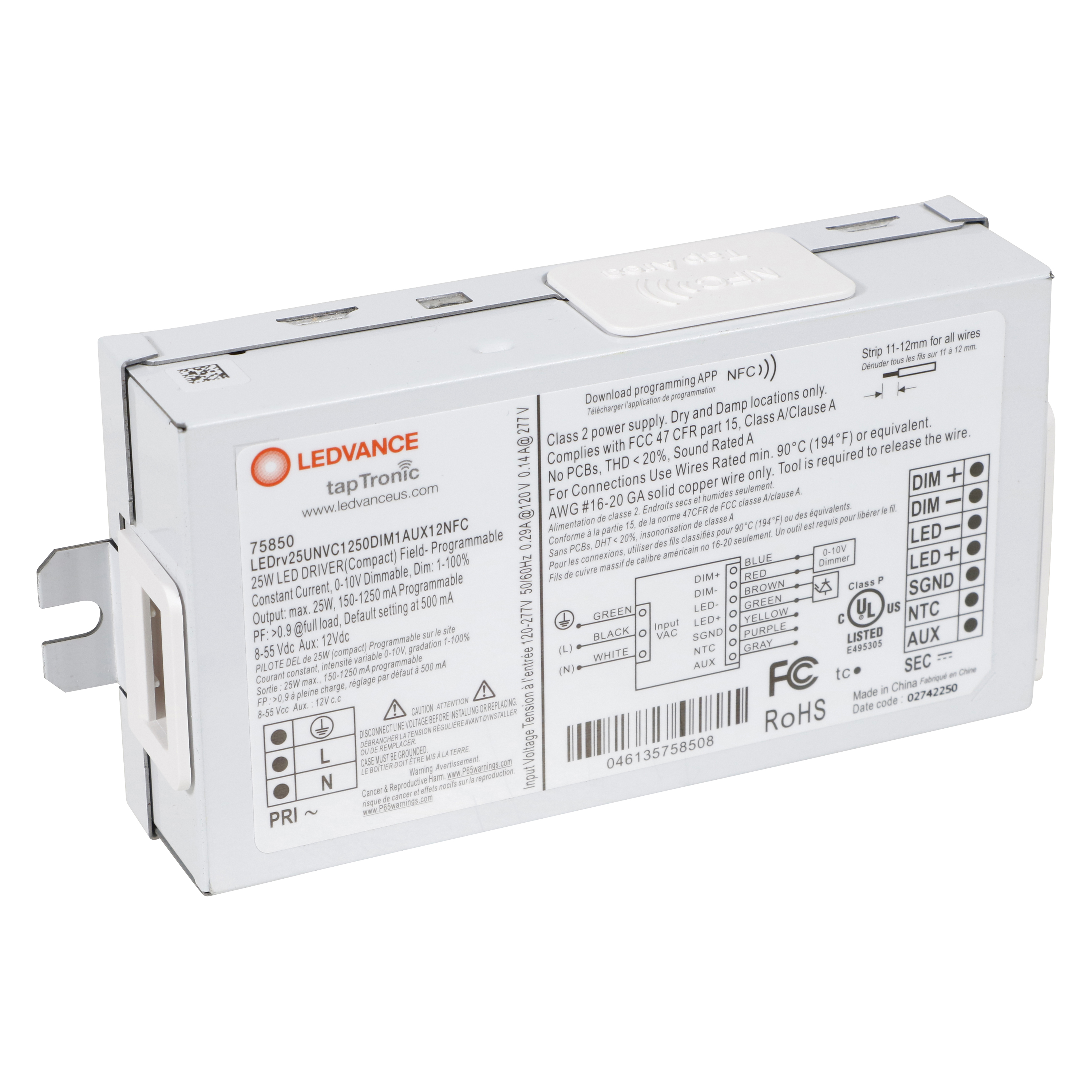 LED NCF PROGRAMMABLE DRIVER COMPACT 25W UNV 1250mA DIM1 AUX12 F-CAN