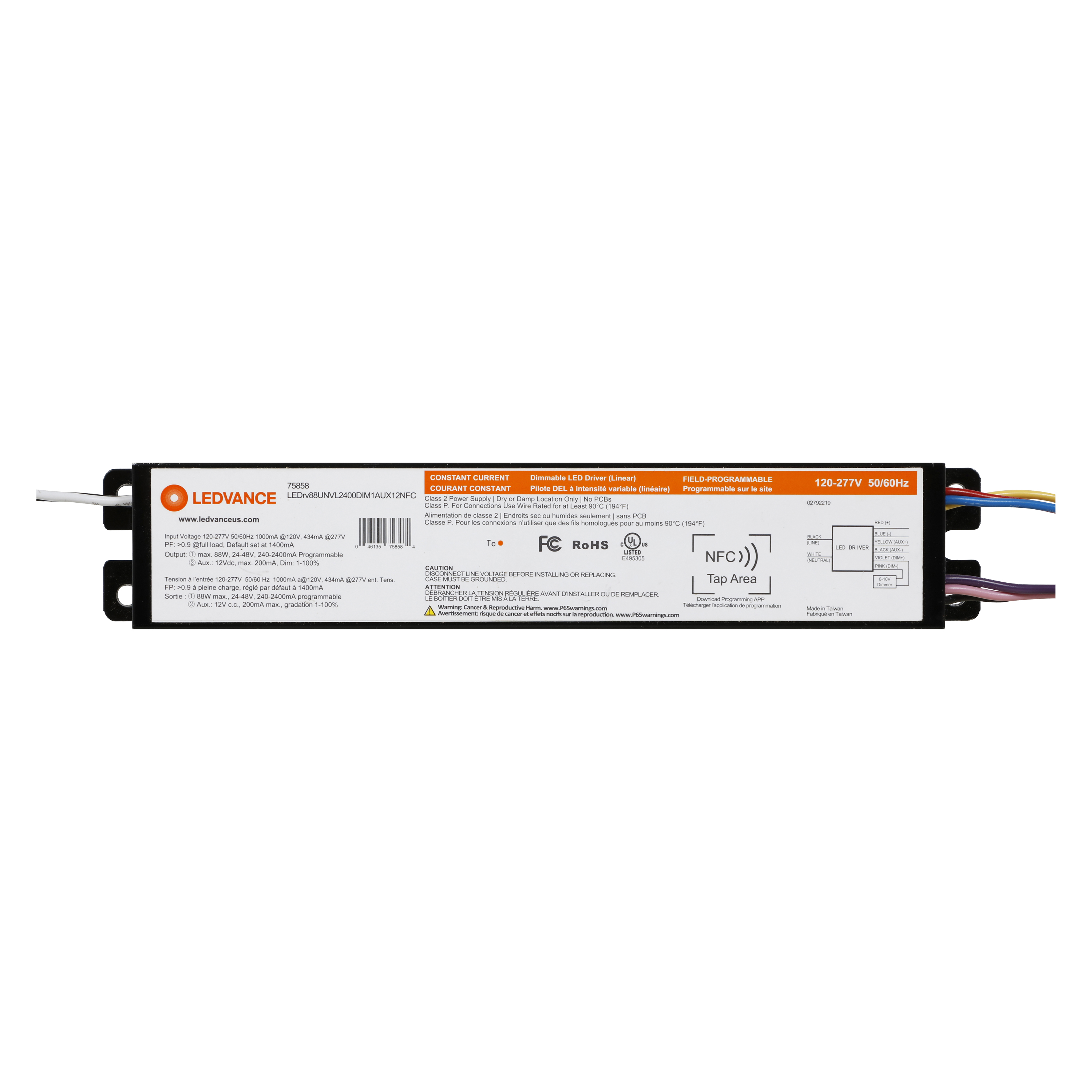 LED NCF PROGRAMMABLE DRIVER LINEAR 88W UNV 2400mA DIM1 AUX12