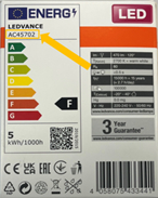 Tunnistekoodi on painettu lamppuun ja se löytyy myös lamppupakkauksen energiamerkistä. Tuotantoeräkoodi on painettu lamppuun.