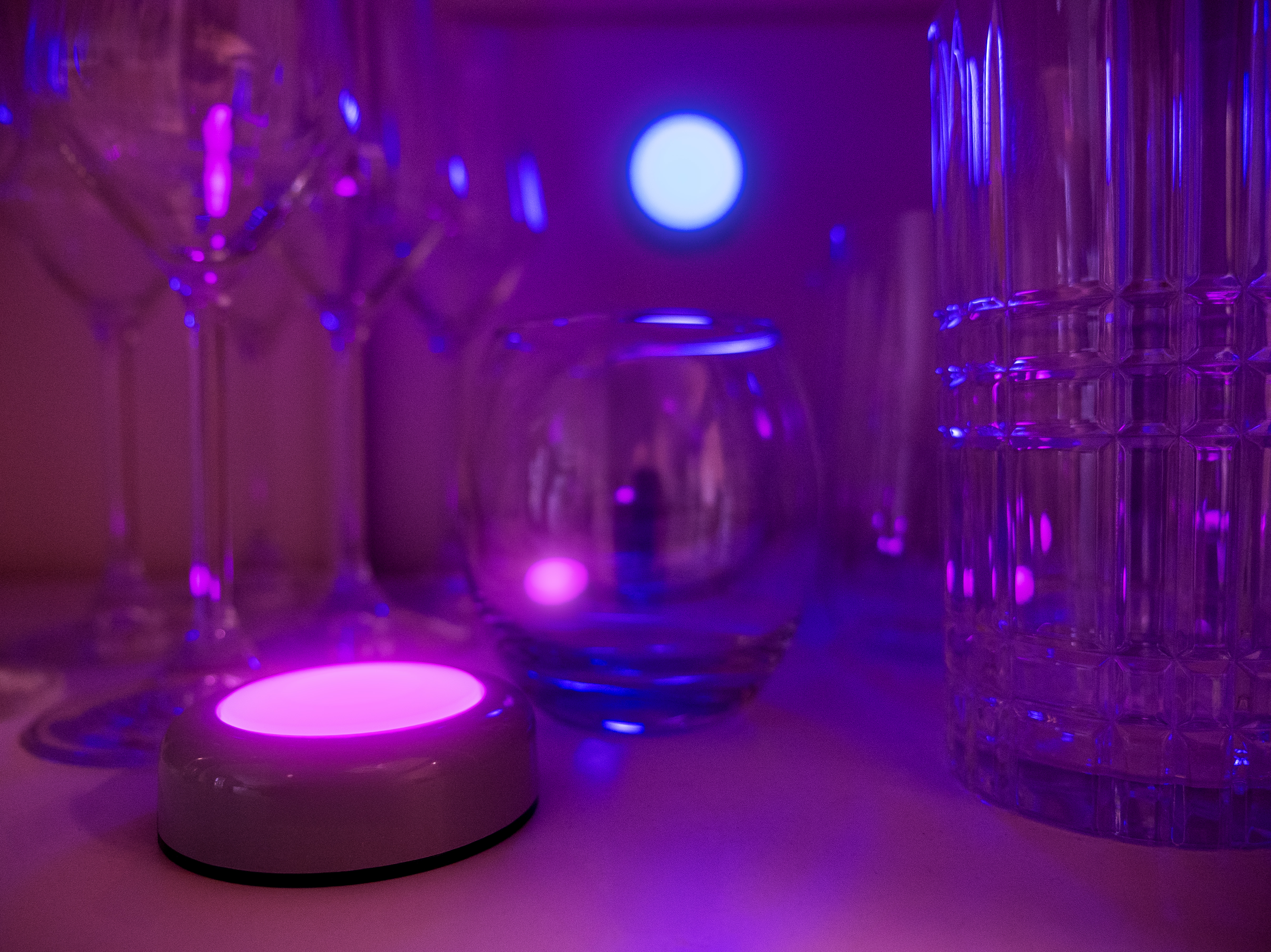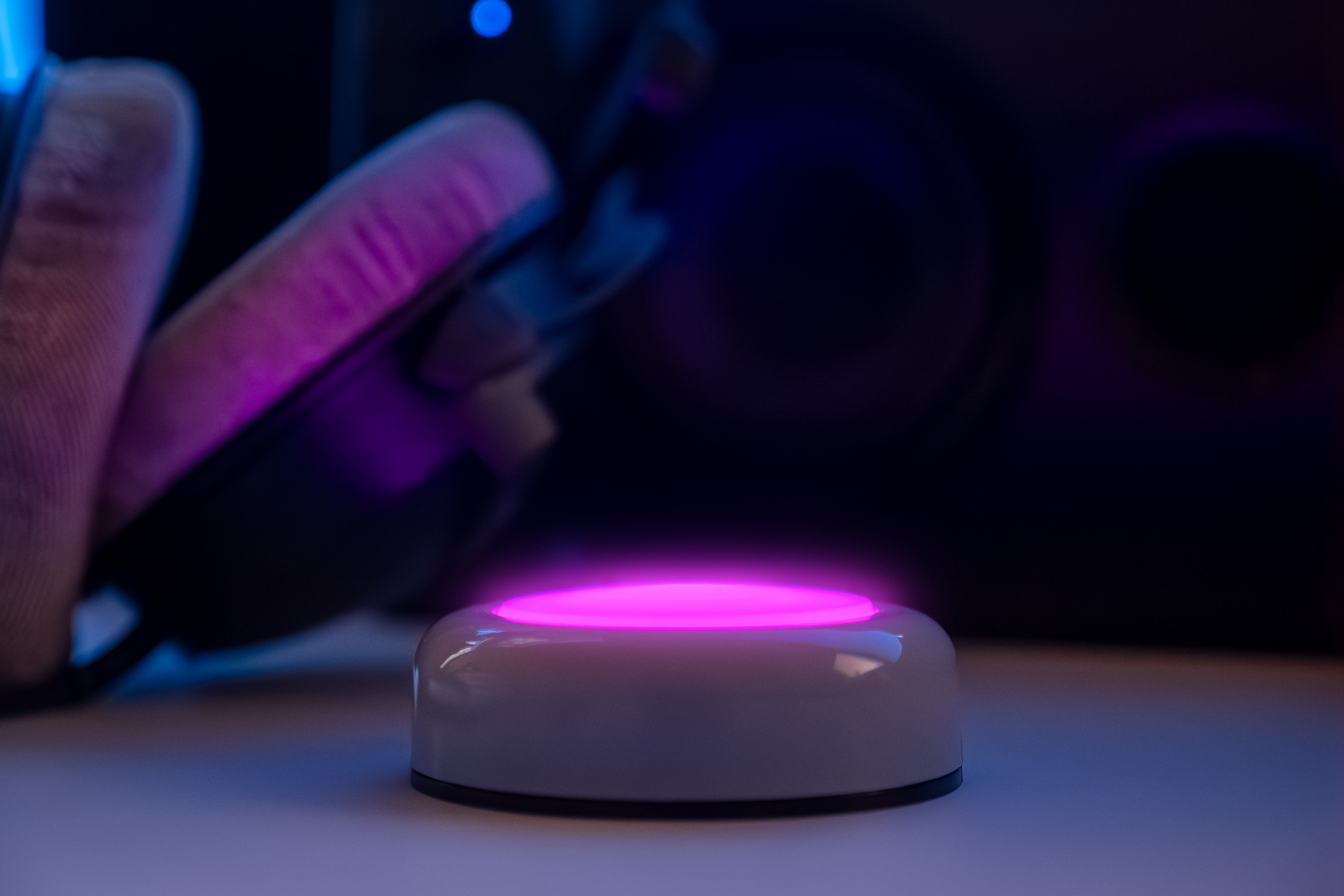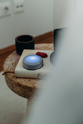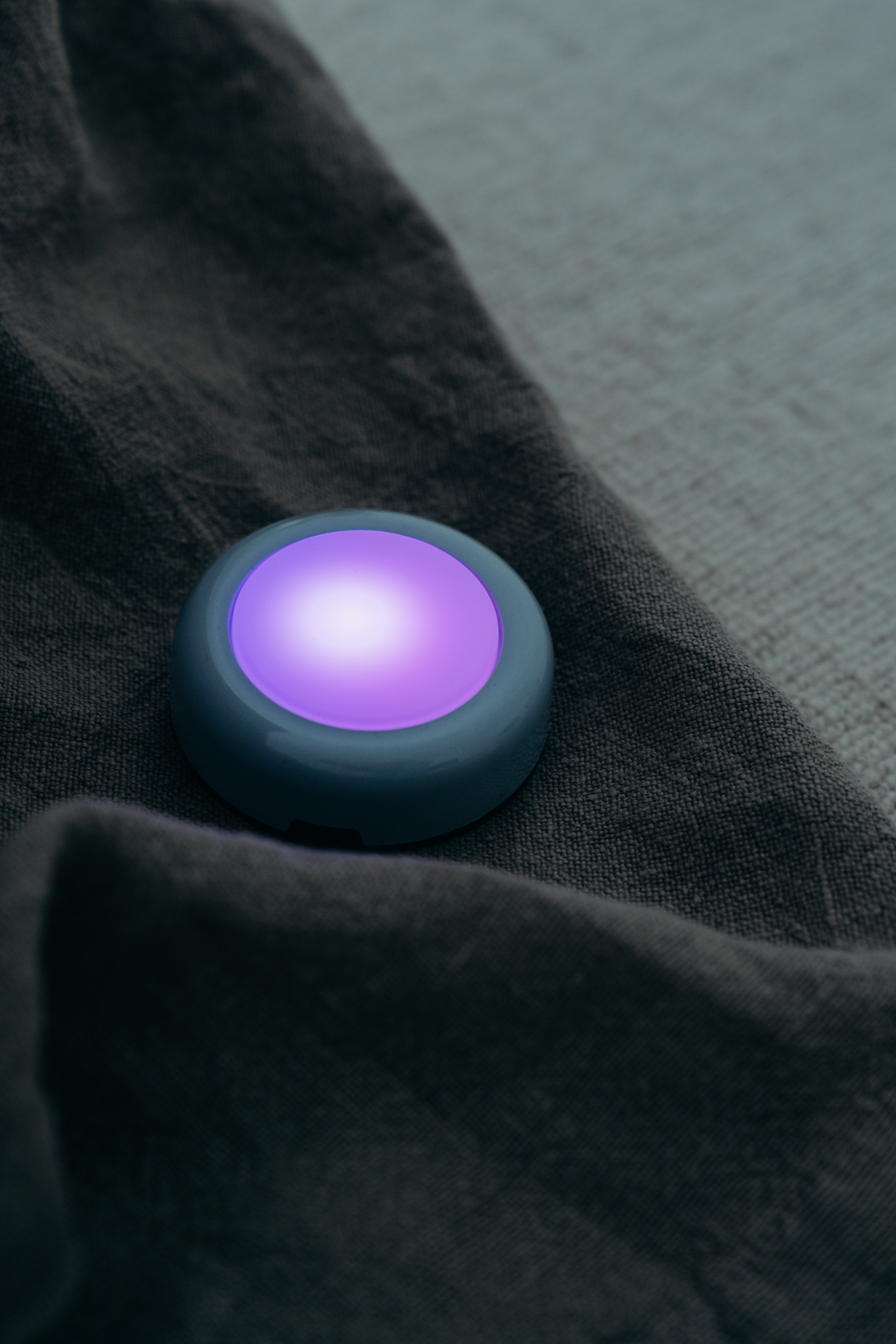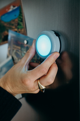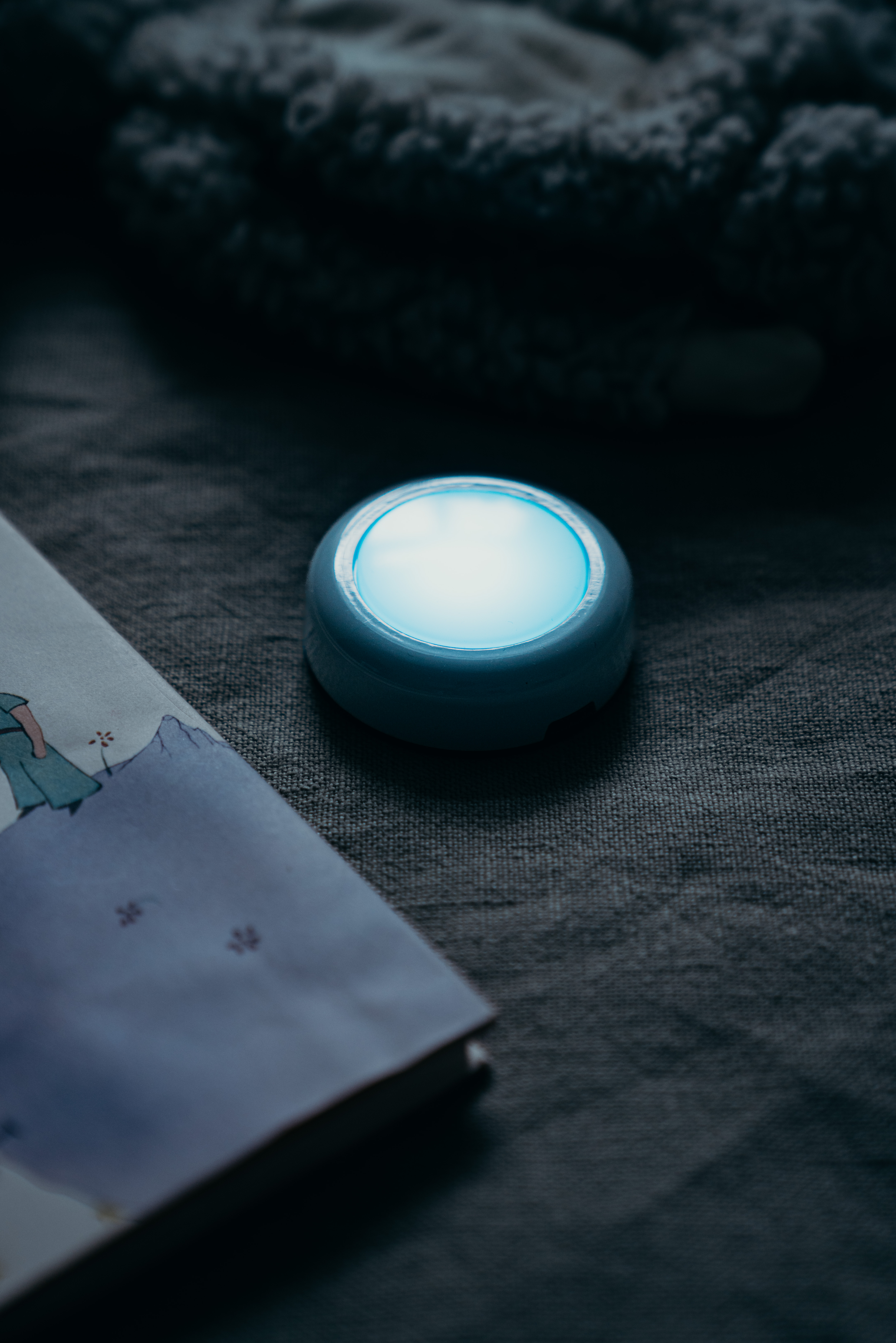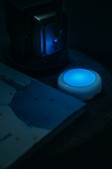 DOT-IT at Night on bedside table Close-Up in blue