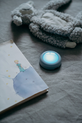 DOT-IT in light blue at Night on bedside table