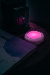 DOT-IT at Night on bedside table Close-Up in pink