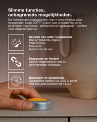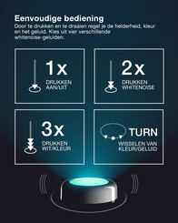 • Keuze uit 4 ontspannende omgevingsgeluiden (white noise)