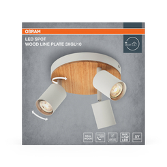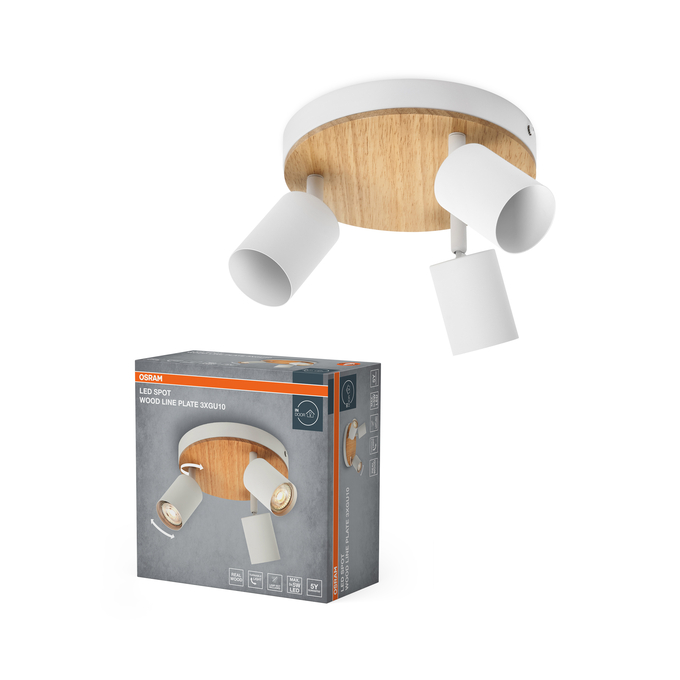 LED Spot Wood Line Plate 3xGU10 White and Wood Decor