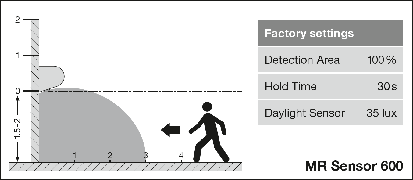 | Detectiebereik van bewegingssensor | 1…3 m |